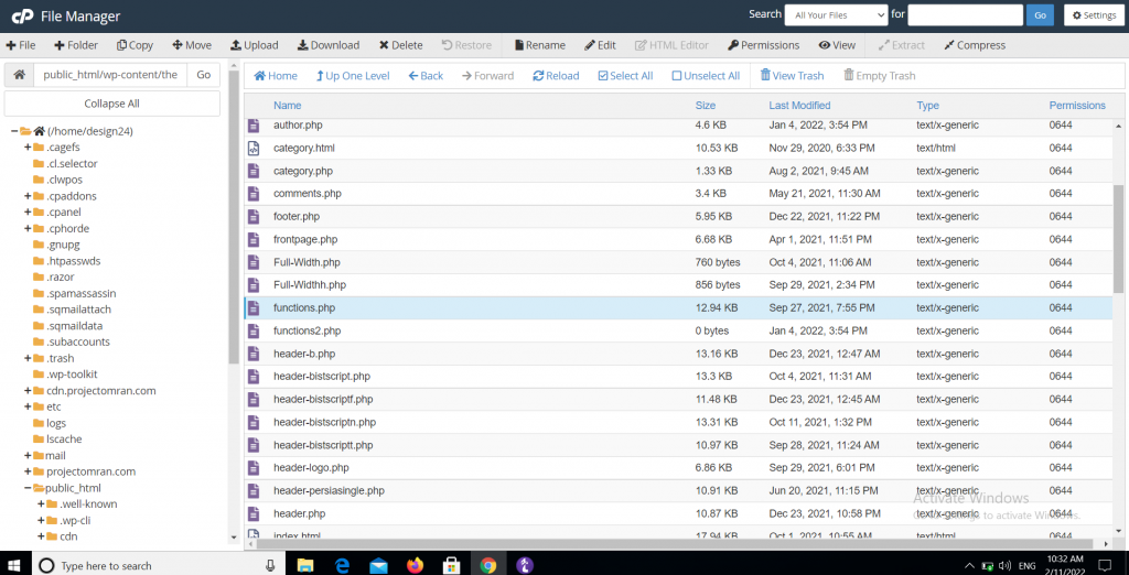 در تصویر زیر فایل functions.php را میبینید