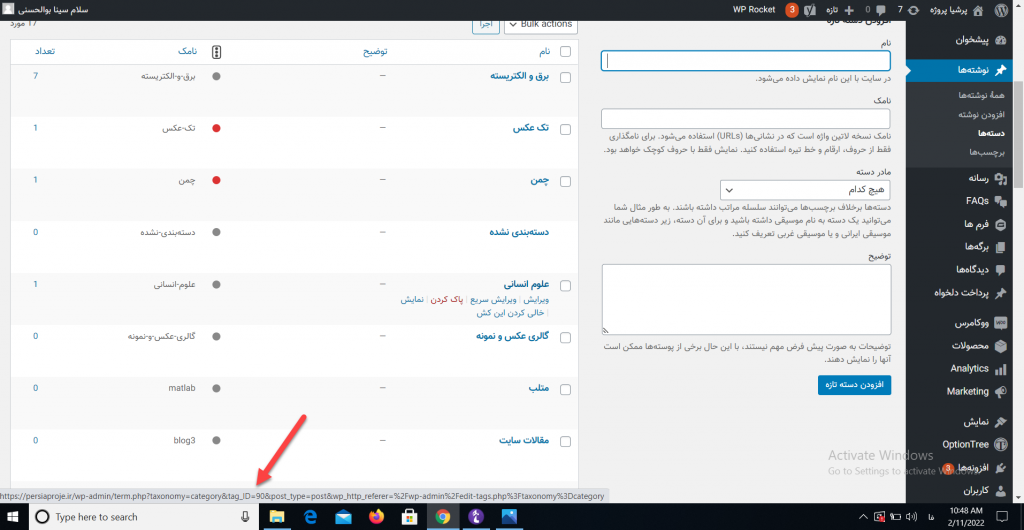 در این کد (2-) شناسه دسته مورد نظر می باشد و شما باید آی دی یا شناسه مد نظر خود را به جای این شناسه قرار دهید فراموش نکنید که علامت منفی قبل از شناسه ضروری می باشد . برای پیدا کردن شناسه دسته در وردپرس به بخش نوشته ها » دسته ها مراجعه کرده و با قرار دادن موس روی دسته مورد نظر آی دی آن را در پایین صفحه نشان می دهد